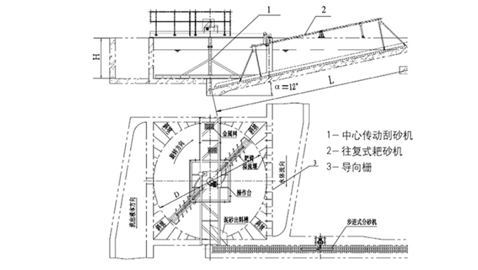 - 该设备一般用于城市生活污水处理厂的初沉池前,格栅后分离污水中的较大无机颗粒(一般直径大于0.5mm)。大部分采用空气提砂,若采用砂泵提砂时一般对磨损要求较高。钢制池体适用于中小型流量使用。