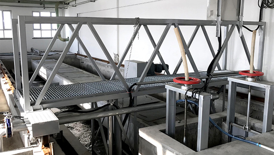 - 桥式吸砂机主要用于污水处理厂(站)的平流式曝气沉砂池,提取沉砂池底部的沉砂。吸砂机在钢轨上沿沉砂池长度方向来回运动,机上的吸砂泵(潜污泵)将池底的砂水混合物吸出排至水沟,或提升至一定的高度,进入配套设备(砂...