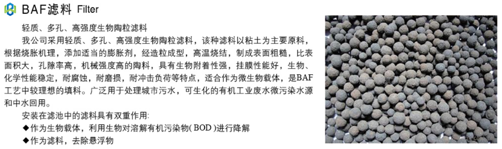 曝气生物滤池( biological aerated flter)简称BAF,是80年代末90年代初兴起的污水生化处理新工艺,属第三代生物膜反应器,广泛用于城市及小区生活污水、工业废水的二级和尝试处理以及微污染水源水的处理中,具有去除SS、COD、BOD、硝化、脱氮除磷的作用出水可达TP<05mg儿、NH3-N<5mg1、TN/10mg儿。其最大特点是集生物氧化和截留悬浮固体于一体,节省了二次沉淀池,其容积负荷大,水力停留时间短,基建投资少,出水水质好,能源消耗低,运行费用省。