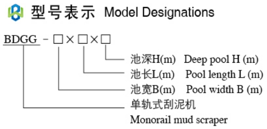 对照应用场合结合工艺要求,注明型号规格,池深池长坡度刮板等参数,不注明表示刮板高按450,其余按推荐值供货。