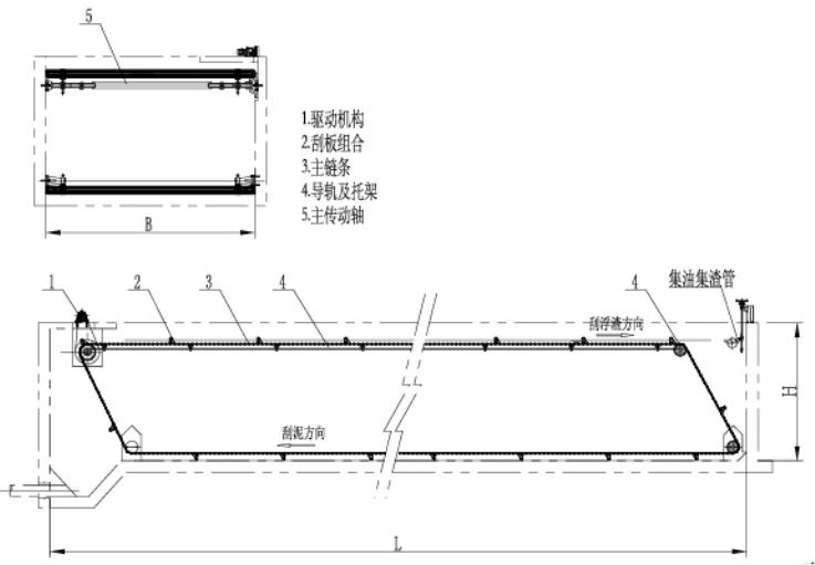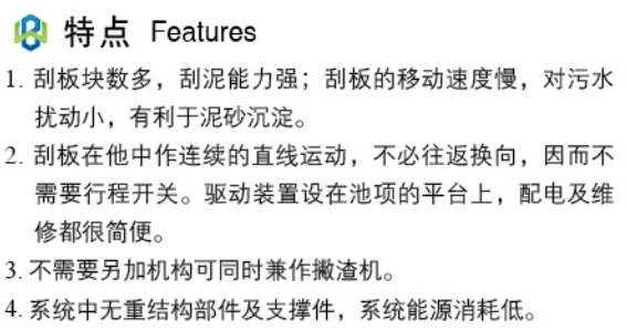 非金属链条刮泥机可用于各种新(旧)沉淀池中,包括初沉池、二沉池、双层沉淀池、斜板沉淀池、API油水分离池,最大池宽10米,池长小于100米。刮泥机既能去除池底的稠污泥及沉砂,又可去除水面浮渣,适用于城市污水,工业废水及水处理。