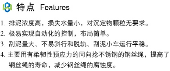 BGSG型钢丝绳牵引刮泥机适用于平流式(矩行)沉淀池,隔油池等池底污泥及液面浮渣的刮集排除。具有适应范围广,结构简单,操作方便,运行安全可靠,占用辅助面积少,自动化程度高等特点。