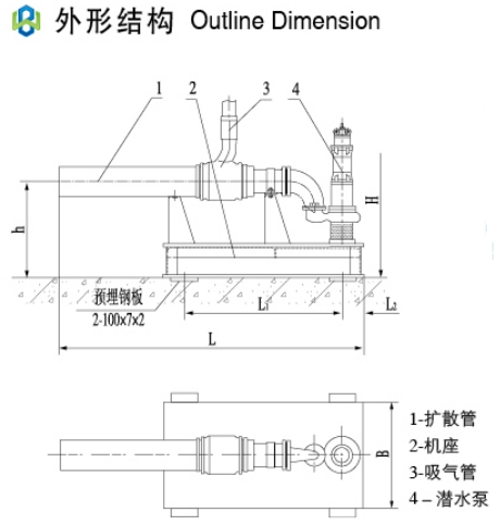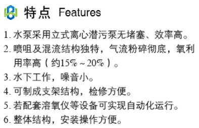 BASO型射流曝气机属于水下曝气设备,是好氧生物污水处理工艺(例CASS工艺)常用设备之一。通过水射自吸气(可采用控制吸气量)使潜水泵所送液体和空气产生充分混合。 广泛适用于中小型污水处理工程,用于深水曝气、生化池的曝气及搅拌、高浓度有机废水处理工艺多台组合或改变安装角度,可提高整体混合效果。