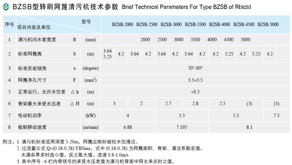 BZSB型转刷网篾式清污机是机械清污滤网型设备之一,可有效过滤和清除水中3.6mm以上中小规格的细枝、杂草及鱼虾等浮物,能满足火电厂、冶金、石油、自来水公司及城市污水处理系统等取水工程供水的要求。火电厂使用后,还可取消二次滤网。本设备可通过液体位差自动控制仪配套,实现自动化控制。