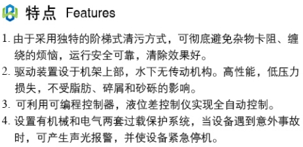 网板式阶梯细格栅一般用于污水处理厂细格栅渠,是一种新型细格栅,拦截细小漂浮物,适用于井宽、并深不大的场合。特点是采用不锈钢孔板制成阶梯式滤网,不会产生垃圾缠绕现象,除污效果好。链条采用特制全封闭结构,污水中的杂质不会进入链条轨道,运转时不会产生常用细格栅经常会产生的堵塞现象。孔板之间衔接紧凑,连接缝隙小,不会产生漏渣现象。