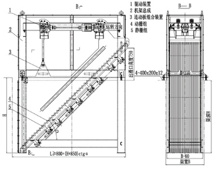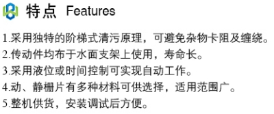 由动、静栅片作自动交替运动,使拦截的漂浮物由动、静栅片交替传送,逐步上移至卸料口,从而被从水中送出,是一种典型的细格栅。适用于井深较浅,宽度不大于2m,漂浮物中有许多杂长丝,易缠绕或吸附在栅上难以清理的场合。