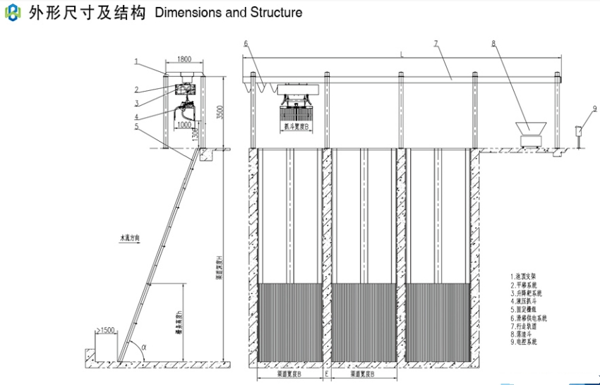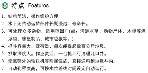 BZDQY型移动式抓斗格栅主要用于清除水中的垃圾、漂浮物,如:树木、水草、垃圾、纤维、塑料制品等。广泛适用于:电站取水口,雨污水提升泵站,水利泵站,污水厂和自来水口进水口。