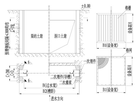 水下渣物采用“T”形耙人工清理。 若前部加设渣斗和配备吊具,则可进行水上清理。当配备电动式自动化控制系统,可实现自动切换捞渣及冲刷功能。 多台格栅(网)互用一个吊具时应配备抓落机构,吊耳形状与所用吊具有关。 洞口使用与渠道使用的区别主要由承压水头确定。 渠(洞)较深场合可考虑叠加组合形式。